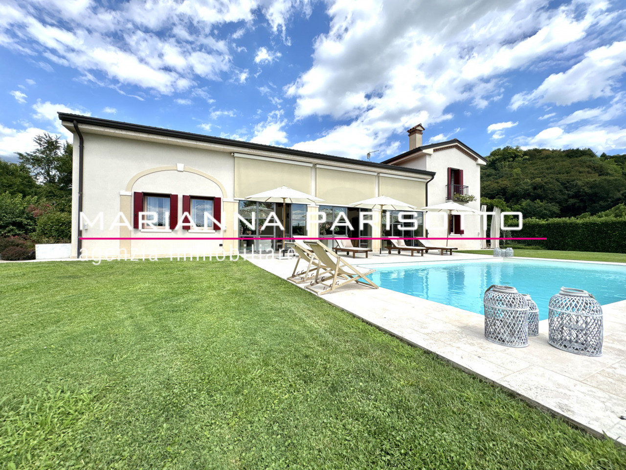 In una delle zone più suggestive e riservate del comune di Mussolente, nel cuore della Piana d’Oriente, sorge questa villa incantevole: un luogo in cui l’eleganza architettonica si fonde con il verde circostante in un equilibrio perfetto tra natura, privacy e comfort assoluto.